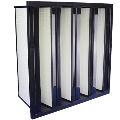 采用超細玻璃纖維紙或pp化纖濾紙作為介質,經全自動無隔板濾芯生產線機折,以熱熔膠線作為分隔物,進出風面加裝菱形噴塑護網,與金屬外框膠合而成。該產品從中效(M6-F9),亞高效(E10-E12)到高效(H13-H14),有多種效率可供客戶選擇。