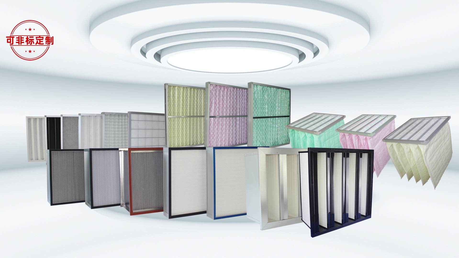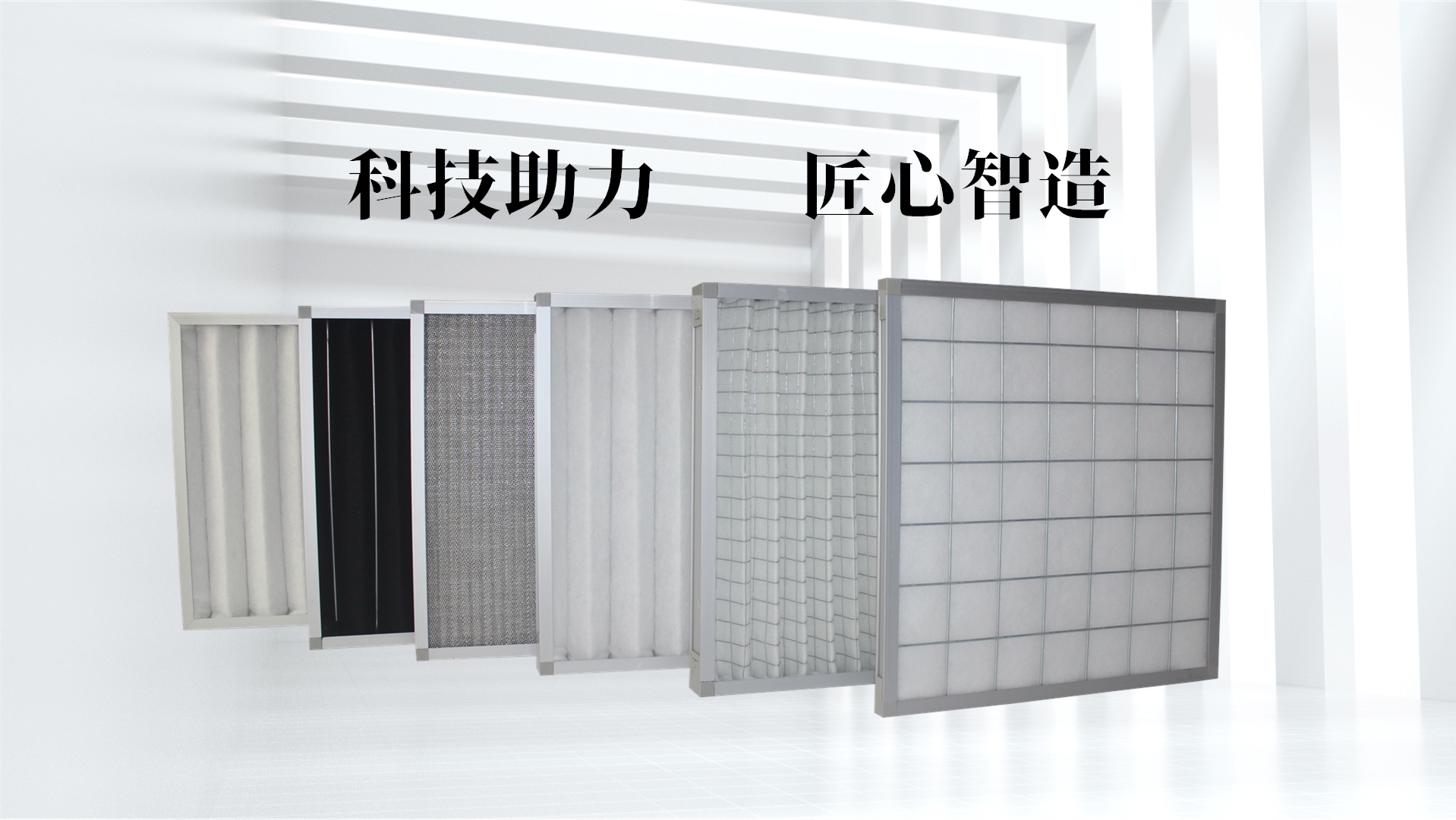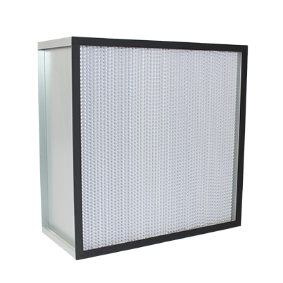采用超細玻璃纖維紙或pp化纖濾紙作為介質,經全自動無隔板濾芯生產線機折,以熱熔膠線作為分隔物,進出風面加裝菱形噴塑護網,與金屬外框膠合而成。該產品從中效(M6-F9),亞高效(E10-E12)到高效(H13-H14),有多種效率可供客戶選擇。