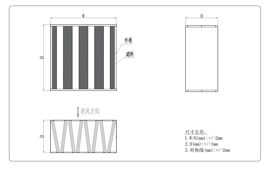 Using ultra-fine fiberglass filter paper, it is made by combining multiple non partition filter elements and strictly sealing them, with efficiency covering F7 to H13. It has the characteristics of large filtration area, low resistance, long service life