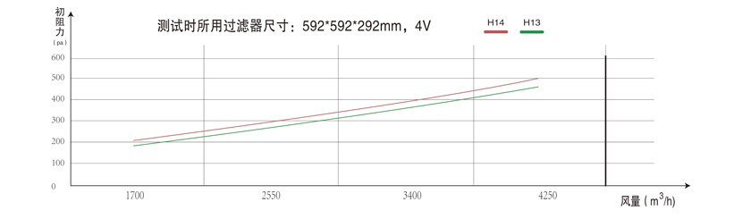 External dimensions Frame body filter area Rated air volume Initial resistance at different efficiencies (Pa) Suggested final resistance
