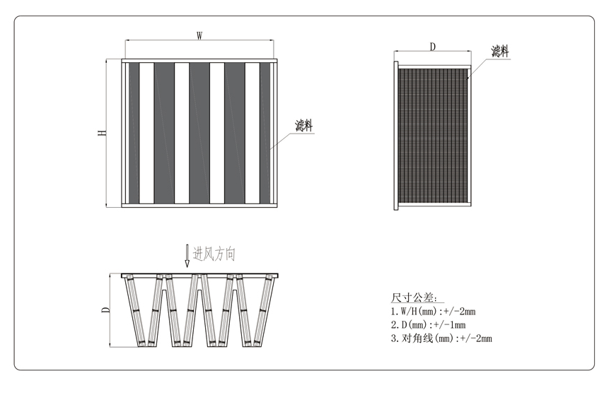 The V-shaped filter is composed of multiple filter elements without partitions. Compared with ordinary filters with partitions, the filter material area is greatly increased, which fully reduces operating resistance, energy consumption, and saves costs.
