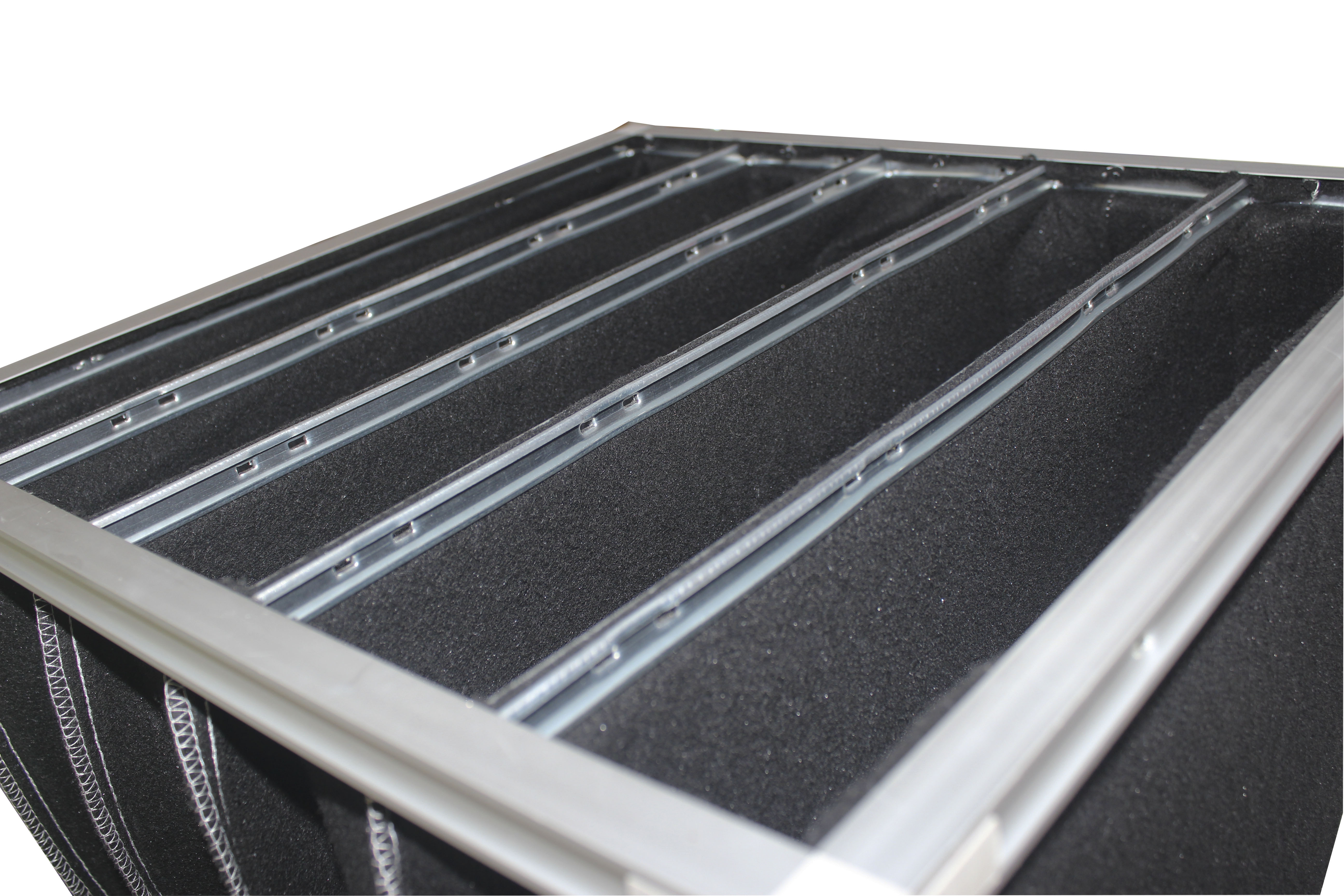 優(yōu)質(zhì)活性炭過濾棉,透氣性好,含碳量高,吸附效果好,過濾面大,濾袋與支撐邊框采用剛性連接結(jié)構(gòu),保證濾袋密封。